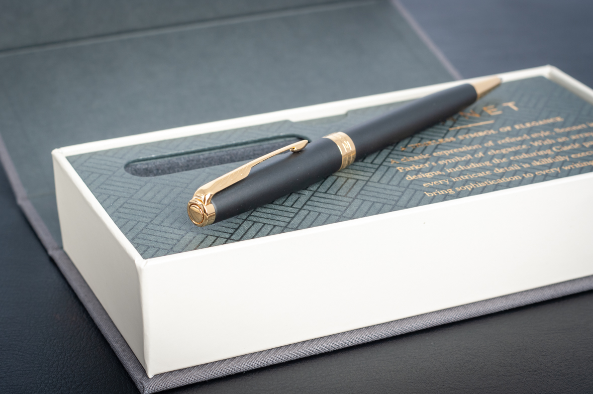 Шариковая ручка Parker Sonnet Matte Black GT от официального дилера Parker в Калининграде. Вы можете дополнительно заказать гравировку, которая подчеркнет Вашу оригинальность и придаст памятность статусному подарку. Все ручки Паркер поставляются в фирменном футляре.